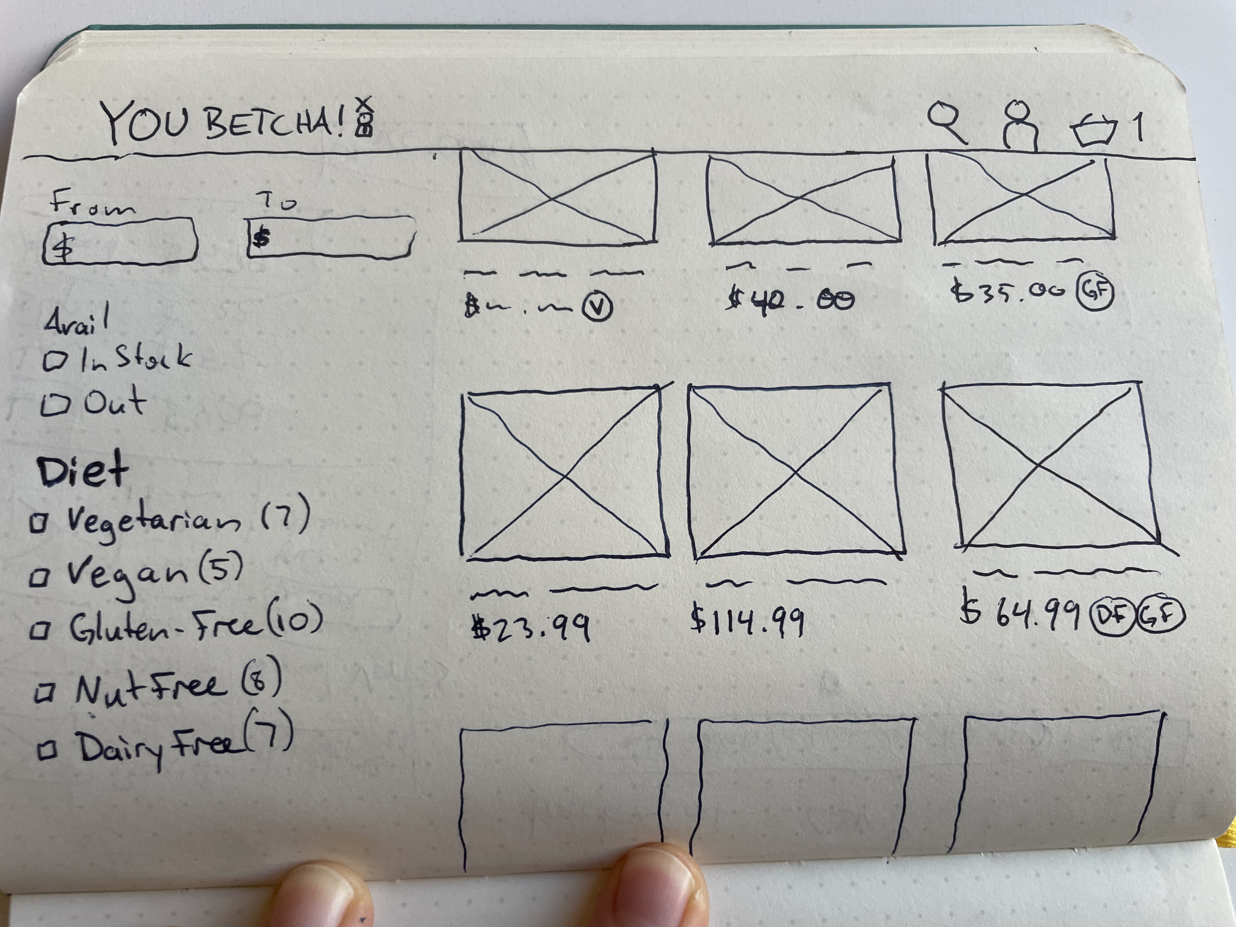 This lo-fi prototype sketch (middle left) allowed me to put my thoughts to paper.